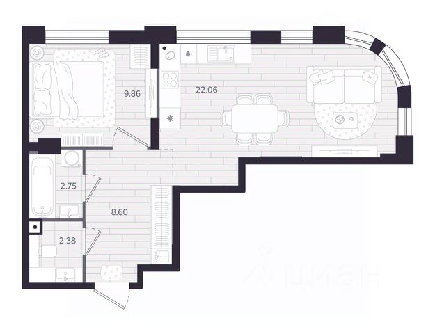 - студии от 26 до 31 кв.м.