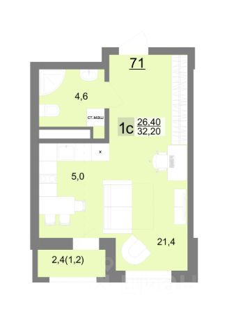 Продам новую квартиру-студию общей площадью 25,8 м, жилая 15 м, на 4-м этаже 31-этажной секции в жилом комплексе РУСЬ, дом 105/1.