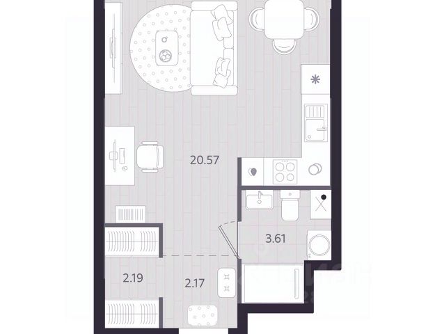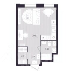 Продается 1-комн. студия с предчистовой отделкой в ЖК "Квартал Траектория" на 11 этаже. Общая площадь: 30.4 кв.м., площадь гостиной 22.1 кв.м., из которых 5 кв.м. выделено под кухонную зону. Все окна выходят на одну сторону. В квартире один балкон, один совмещенный санузел. Высота потолков 2.82 м.