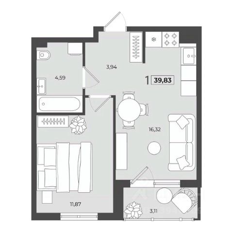 • ✓ В базе Циан 1 квартир-студий на 12 этаже в Березовском