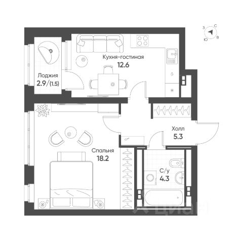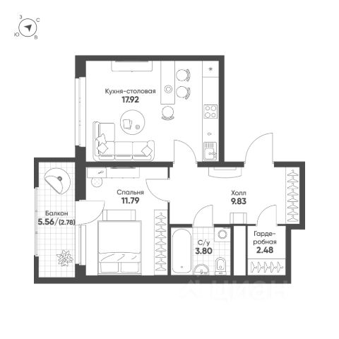 Предлагаем новую 2-х комнатную квартиру по переуступке прав coбcтвeнноcти в coвpeмeнном микрорайоне "Солнeчный".
