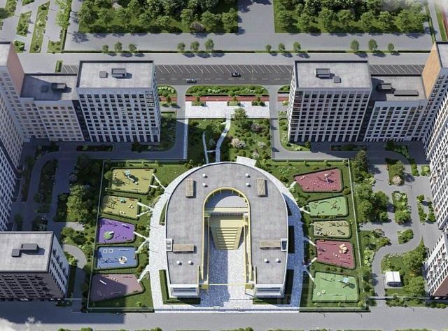 Территория двора благоустроена ландшафтным дизайном, оборудована зонами для занятий спортом, отдыха и развлечений. Неподалеку раскинулся парк с комплексом спортивных площадок, игровых зон и мест для прогулок.
