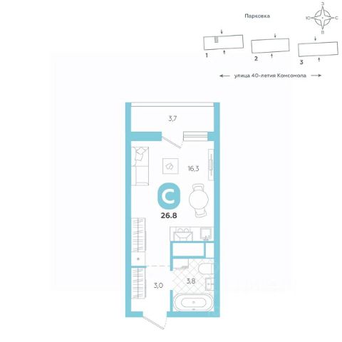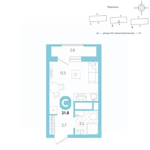• ✅ Минимальная площадь: 21,7 м²