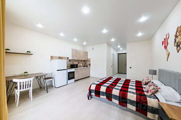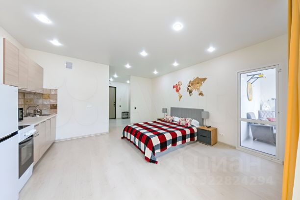 В квартире остается кухонный гарнитур, плита, вытяжка, диван, двухспальная кровать, шкаф, холодильник, стиральная машина, тумба под ТВ. Проведен интернет.