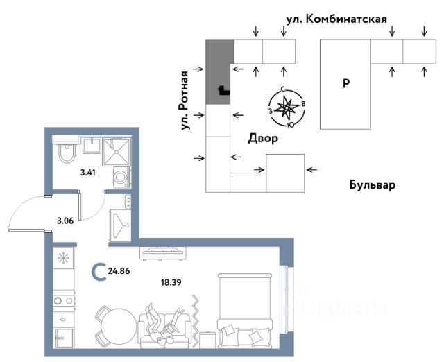 Новая квартира в ЖК "Уральский сад" напрямую от федерального застройщика "Страна Девелопмент". 0комнатная квартира площадью 24,86кв. м. на 14 этаже жилого комплекса "Уральский сад". Жилой комплекс "Уральский сад" — это новый проект ревитализации территории в Екатеринбурге. Основная идея проекта создать комьюнити людей, которые наполняют свою жизнь необходимыми ресурсами и энергией, стремятся созидать, вдохновлять и развивать. 17 жилых домов переменной этажности — это "место силы" для жителей, соединенное с комфортом и умными технологиями. Преимущества Территория проекта будет условно разделена на 3 зоны: внешнее окружение, общественный бульвар и закрытые дворы. Чтобы создать дополнительный зелёный буффер на общественных пространствах мы высадим полноразмерные деревья. Особое внимание мы уделили входным зонам с парадными — каждая из них имеет свой уникальный дизайн, гармонирующий с внутридворовым пространством. Разноуровневые террасы, французские балконы и панорамное угловое остекление — особенность проекта. Архитектурная подсветка акцентно выделяет квартал в локации. Отделка Квартиры сдаются с предчистовой отделкой: произведена разводка электричества и отопления, выполнена стяжка пола, стены выровнены "под маяк", установлены розетки, выключатели и радиаторы. Дизайнерская отделка При покупке квартиры в ЖК "Уральски сад" можно включить стоимость ремонта в ипотеку. Пять вариантов на выбор: хлопковая нить, серый шторм, белый камень, шалфей, голубой вереск. Способы покупки Сотрудники "Страна Девелопмент" будут сопровождать вас на каждом этапе сделки, помогут получить одобрение по ипотеке или снизить ежемесячный платеж. - ипотека - рассрочка - с использованием материнского капитала -100% оплата наличными т от застройщика: 5 вариантов на выбор. Закрытый двор с площадками и зонами отдыха: мост-акведук, тренажёры, лабиринты, гамаки и шезлонги. ОТДЕЛКА Базовая отделка или готовый ремонт от застройщика. В базовой отделке все черновые работы выполнены, подведены коммуникации, стены оштукатурены под маяк. В ремонт от застройщика входит 5 вариантов отделки, уже включено всё необходимое: от сантехники до кондиционера. СПОСОБЫ ПОКУПКИ Сотрудники "Страны Девелопмент" будут сопровождать вас на каждом этапе сделки, помогут получить одобрение по ипотеке или снизить ежемесячный платеж. ипотека материнский капитал 100% оплата наличными рассрочка обмен — это выкуп вашей старой квартиры и зачисление полученных денежных средств в счет стоимости новой квартиры или в качестве первоначального взноса по ипотеке.