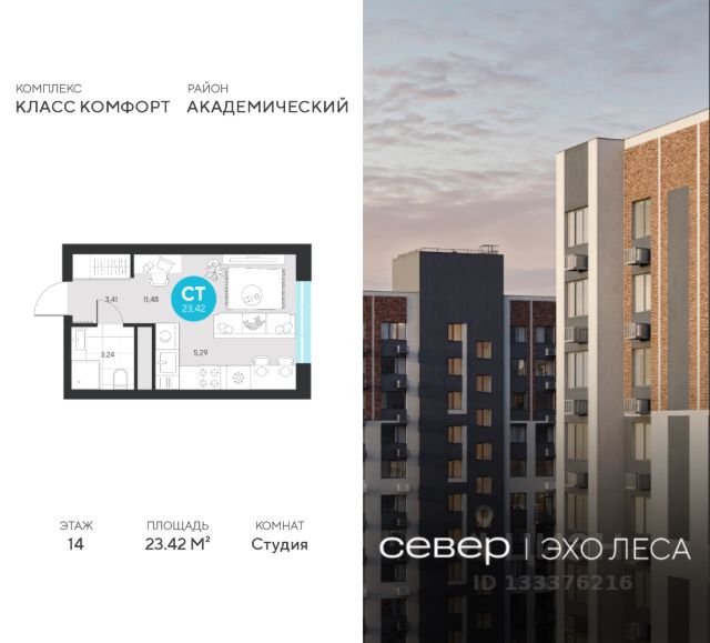 Продаётся квартира площадью 25.55 м2 в жилом комплексе "Эхо леса". Квартира находится на 14 этаже, жилая площадь квартиры 13.32 м2, площадь кухни-ниши — м2. Срок сдачи — I кв. 2028 Жилой комплекс "Эхо леса" — это: - дом в эко-стиле - двор с выходом в лесопарк - лаконичная архитектура - развитая инфраструктура вокруг квартала Инфраструктура В окружении проекта — вся необходимая инфраструктура: детские сады, школы, спортивный комплекс, продуктовые магазины, аптеки, кофейни, рестораны и салоны красоты. Благоустройство Концепция двора-парка продолжает тему леса. Ландшафт с продуманным всесезонным озеленением дополняют акценты: сухой ручей из камней, столы и навесы из натурального дерева, эко-тропы, фонтан и променад. Для взрослых предусмотрены пешеходные и велодорожки, для детей — игровые площадки для разных возрастов. Архитектура Переменная высота секций создаёт выразительный архитектурный облик. На фасадах — игра контрастных, при этом природных оттенков. Динамики зданию придают текстуры материалов: фактурной штукатурки и клинкерного кирпича. Лобби Интерьер в холле продолжает концепцию квартала и выполнен в эко стиле. В отделке используются элементы природных материалов с изображениями листвы и деревьев. Паркинг Тёплый подземный паркинг организован как единое пространство с собственным дизайном. Кладовые Индивидуальные помещения на техническом этаже — способ сохранить пространство в квартире. Попасть в кладовые можно на лифте. Планировки В продуманных планировках выделены тихие и шумные зоны. Приватные спальни и кабинеты спрятаны от маршрутов домашнего движения, а кухни-гостиные с барной стойкой вместо стены — всегда готовы к семейным праздникам. Из окон квартир открываются живописные виды на лес.
