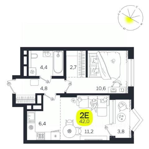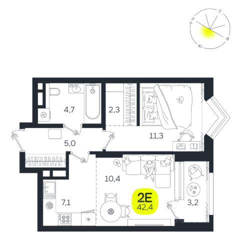 Квартал состоит из четырех 27-этажных домов. В домах — уютные студии, однокомнатные, двухкомнатные, семейные трехкомнатные квартиры. А для ценителей редких форматов квартиры с террасами. Парадный вестибюль с камином и кафе, двор с лаунж-зонами, фонтаном, сенсорным садом, детскими и спортивными площадками внутри.