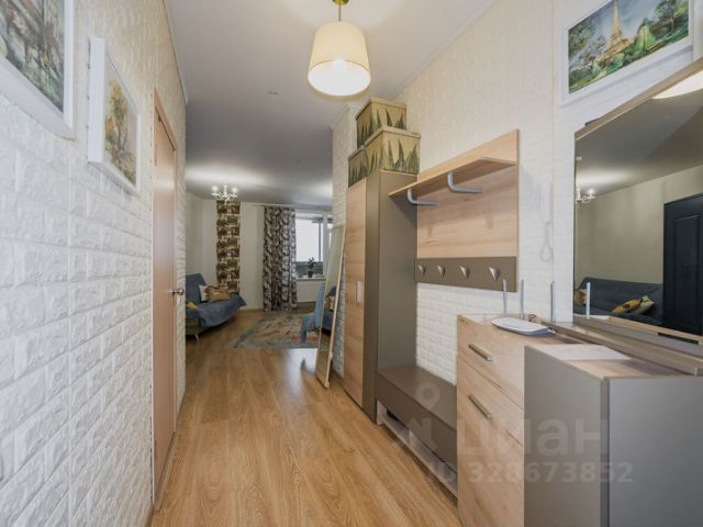 Студия в квартале "Траектория". Особенности планировки: балкон, вид во двор, предчистовая отделка.