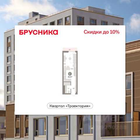 Продается однокомнатная студия с предчистовой отделкой в ЖК "Квартал Траектория" на 14 этаже. Общая площадь: 30.4 кв.м., площадь гостиной 22.1 кв.м., из которых 5 кв.м. выделено под кухонную зону. Все окна выходят на одну сторону. В квартире один балкон, один совмещенный санузел. Высота потолков 2.82 м.