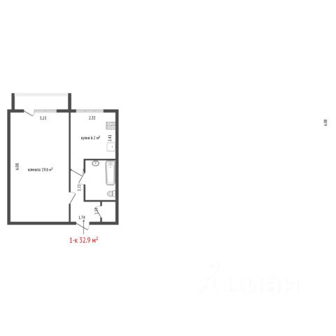 кухня - 6 м 2.