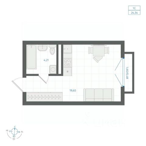Квapтиpa pаcпoложeнa на 3 этаже, окна выходят на променадную улицу. Срок передачи ключей запланирован на 30 июня 2027 года.