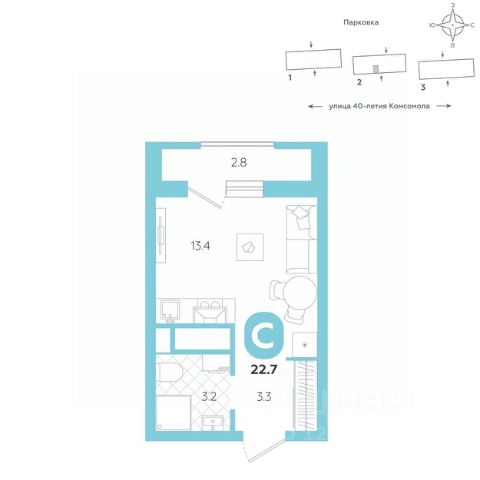 Эргономичная квартира-студия с лоджией и перспективой роста в цене — отличный выбор для тех, кто делает первые шаги к самостоятельной жизни. Общая площадь квартиры 28,7 кв.м., и ее умная планировка позволяет создать атмосферу, полностью отражающую ваши стиль и предпочтения. Квартира располагается в ЖК "Комсомольский" — жилом комплексе комфорт-класса. Здесь вы будете наслаждаться беззаботной жизнью, ведь ваш дом — воплощение практичности, безопасности и надежности. Для удобства предусмотрены колясочные на первых этажах домов, где можно оставить велосипеды и коляски в тепле. За безопасность отвечают система электронных ключей и видеонаблюдение. Еще здесь собственная котельная, поэтому в доме всегда будут горячая вода и оплата счетов только за фактически потребленное тепло. ПРЕИМУЩЕСТВА ЖК На этаже 15 квартир Красивые и функциональные парадные с мягкой и стильной зоной для отдыха, книгообменником, встроенными почтовыми ящиками и нишами для сумок Колясочные с доступом по ключу IP-домофоны Тихие лифты с плавным ходом О ПРОЕКТЕ ЖК "Комсомольский" строится в спокойном Кировском районе Екатеринбурга в границах улиц Сыромолотова — Рассветная — 40-лет Комсомола. Комплекс состоит из трех домов переменной этажности, которые выделяются динамичными линиями, выразительными фасадами и стильными лоджиями. ЛОКАЦИЯ Всё, что необходимо для повседневной жизни, находится недалеко от дома: школы, детские сады, продуктовые магазины, фитнес-клубы. Дорога до центра города на машине займет всего 10 минут — достаточно повернуть с улицы 40-летия Комсомола на улицу Владимира Высоцкого. Рядом с этим перекрестком начинается "Тропа здоровья" — большой терренкур вдоль "Каменных палаток". 10 мин до центра 3-4 минуты до школы No 82, гимназии No 176 4-5 минут до детских садов No 208, No 583, 266 20 мин до Свердловского областного медицинского колледжа и Центральной городской больницы No 7 В рамках стратегического развития района на первых этажах домов появятся коммерческие помещения, в которых откроются магазины и кафе. Следует учесть, что к 2030 году в Кировском районе планируется формирование регионального рекреационно-оздоровительного кластера, строительство ветки метро, расширение и модернизация старых промышленных зон социальной и бизнес-инфраструктуры, что приведет к созданию комфортной среды для жизни. Кроме того, в стратегию входит развитие Шарташского лесного парка как центра регионального и международного туризма. СПОСОБЫ ПОКУПКИ Ипотека: подберем выгодные условия в нескольких банках, чтобы вы могли выбрать лучшее Материнской капитал: можно использовать в качестве первоначального взноса Рассрочка: платите частями без % Сертификаты: позволяют оплатить часть стоимости квартиры О КОМПАНИИ "Паритет Девелопмент" — это современный и ответственный подход к реализации проектов в сфере жилищного строительства. Компания формирует среду, способную создать новое качество жизни для клиентов, поэтому каждый проект имеет свою философию — не просто квадрат