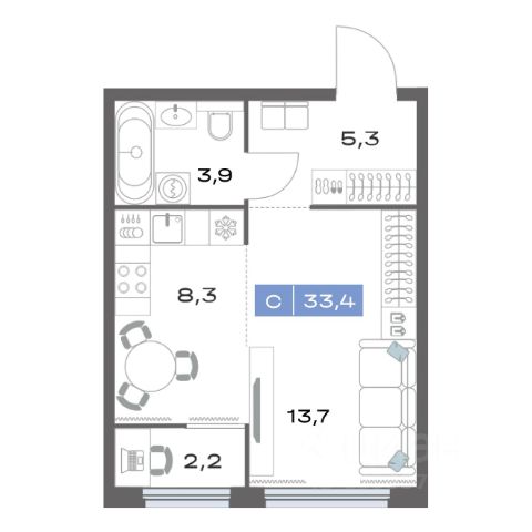 • ✅ Объект наибольшей площади: 33,4 м²