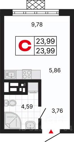 Общая площадь 35.53 м2 на 17 этаже. Этажей в доме: 28.