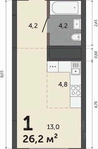 Продаётся студия в строящемся доме (Дом 6), срок сдачи: III-кв. 2027, общей площадью 30.2 кв.м., на 16 этаже. Расположение, транспортная доступность