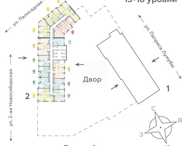 Квартал состоит из четырех 27-этажных домов. В домах — уютные студии, однокомнатные, двухкомнатные, семейные трехкомнатные квартиры. А для ценителей редких форматов квартиры с террасами. Парадный вестибюль с камином и кафе, двор с лаунж-зонами, фонтаном, сенсорным садом, детскими и спортивными площадками внутри.