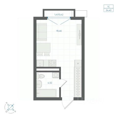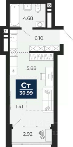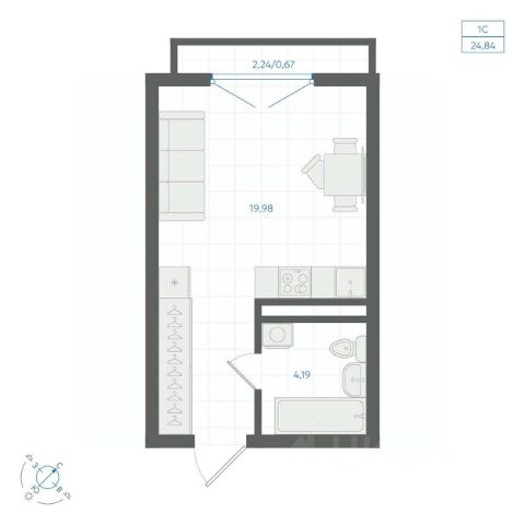 1-комн. квартира-студия с предчистовой отделкой в ЖК "Соната Парк" на 2 этаже. Общая площадь: 42.99 кв.м., площадь гостиной 18.38 кв.м., из которых 5.34 кв.м. выделено под кухонную зону. Все окна выходят на одну сторону. В квартире один балкон, один совмещенный санузел. Терраса представляет собой роскошную зону отдыха, где вы на свой вкус можете создать атмосферу комфорта и уюта. Высота потолков 2.72 м.
