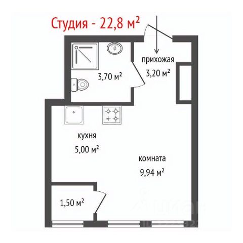 Санузел: потолок - без отделки, пол - стяжка под финишную отделку, стены - штукатурка под чистовую отделку, установлен комплект санфаянса (унитаз, раковина, смеситель);