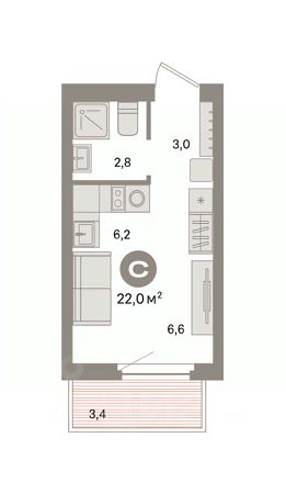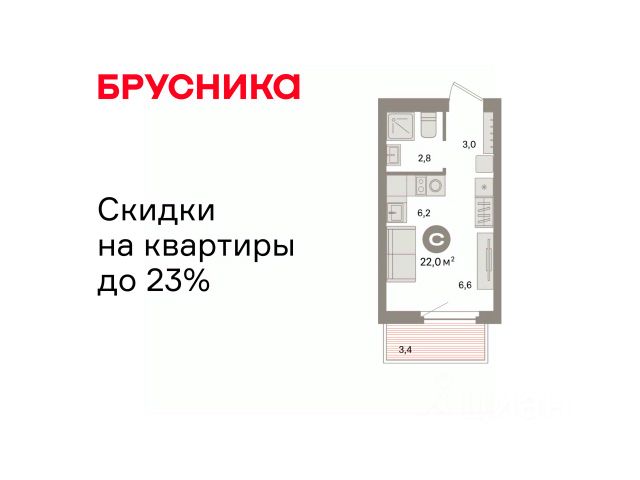 Студия в квартале "Траектория". Особенности планировки: потолки 3 м и выше, предчистовая отделка.