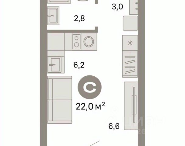 Продается 1-комн. студия от застройщика с предчистовой отделкой в ЖК "Квартал Траектория" на 2 этаже. Общая площадь: 28 кв.м. Высота потолков 2.82 м.