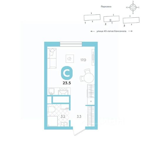 Эргономичная квартира-студия с перспективой роста в цене — отличный выбор для тех, кто делает первые шаги к самостоятельной жизни. Общая площадь квартиры 23,5 кв.м., и ее умная планировка позволяет создать атмосферу, полностью отражающую ваши стиль и предпочтения. Квартира располагается в ЖК "Комсомольский" — жилом комплексе комфорт-класса. Здесь вы будете наслаждаться беззаботной жизнью, ведь ваш дом — воплощение практичности, безопасности и надежности. Для удобства предусмотрены колясочные на первых этажах домов, где можно оставить велосипеды и коляски в тепле. За безопасность отвечают система электронных ключей и видеонаблюдение. Еще здесь собственная котельная, поэтому в доме всегда будут горячая вода и оплата счетов только за фактически потребленное тепло. ПРЕИМУЩЕСТВА ЖК На этаже 15 квартир Красивые и функциональные парадные с мягкой и стильной зоной для отдыха, книгообменником, встроенными почтовыми ящиками и нишами для сумок Колясочные с доступом по ключу IP-домофоны Тихие лифты с плавным ходом О ПРОЕКТЕ ЖК "Комсомольский" строится в спокойном Кировском районе Екатеринбурга в границах улиц Сыромолотова — Рассветная — 40-лет Комсомола. Комплекс состоит из трех домов переменной этажности, которые выделяются динамичными линиями, выразительными фасадами и стильными лоджиями. ЛОКАЦИЯ Всё, что необходимо для повседневной жизни, находится недалеко от дома: школы, детские сады, продуктовые магазины, фитнес-клубы. Дорога до центра города на машине займет всего 10 минут — достаточно повернуть с улицы 40-летия Комсомола на улицу Владимира Высоцкого. Рядом с этим перекрестком начинается "Тропа здоровья" — большой терренкур вдоль "Каменных палаток". 10 мин до центра 3-4 минуты до школы No 82, гимназии No 176 4-5 минут до детских садов No 208, No 583, 266 20 мин до Свердловского областного медицинского колледжа и Центральной городской больницы No 7 В рамках стратегического развития района на первых этажах домов появятся коммерческие помещения, в которых откроются магазины и кафе. Следует учесть, что к 2030 году в Кировском районе планируется формирование регионального рекреационно-оздоровительного кластера, строительство ветки метро, расширение и модернизация старых промышленных зон социальной и бизнес-инфраструктуры, что приведет к созданию комфортной среды для жизни. Кроме того, в стратегию входит развитие Шарташского лесного парка как центра регионального и международного туризма. СПОСОБЫ ПОКУПКИ Ипотека: подберем выгодные условия в нескольких банках, чтобы вы могли выбрать лучшее Материнской капитал: можно использовать в качестве первоначального взноса Рассрочка: платите частями без % Сертификаты: позволяют оплатить часть стоимости квартиры О КОМПАНИИ "Паритет Девелопмент" — это современный и ответственный подход к реализации проектов в сфере жилищного строит