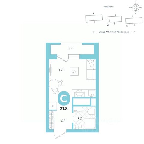 Эргономичная квартира-студия с лоджией и перспективой роста в цене — отличный выбор для тех, кто делает первые шаги к самостоятельной жизни. Общая площадь квартиры 21,8 кв.м., и ее умная планировка позволяет создать атмосферу, полностью отражающую ваши стиль и предпочтения. Квартира располагается в ЖК "Комсомольский" — жилом комплексе комфорт-класса. Здесь вы будете наслаждаться беззаботной жизнью, ведь ваш дом — воплощение практичности, безопасности и надежности. Для удобства предусмотрены колясочные на первых этажах домов, где можно оставить велосипеды и коляски в тепле. За безопасность отвечают система электронных ключей и видеонаблюдение. Еще здесь собственная котельная, поэтому в доме всегда будут горячая вода и оплата счетов только за фактически потребленное тепло. ПРЕИМУЩЕСТВА ЖК На этаже 15 квартир Красивые и функциональные парадные с мягкой и стильной зоной для отдыха, книгообменником, встроенными почтовыми ящиками и нишами для сумок Колясочные с доступом по ключу IP-домофоны Тихие лифты с плавным ходом О ПРОЕКТЕ ЖК "Комсомольский" строится в спокойном Кировском районе Екатеринбурга в границах улиц Сыромолотова — Рассветная — 40-лет Комсомола. Комплекс состоит из трех домов переменной этажности, которые выделяются динамичными линиями, выразительными фасадами и стильными лоджиями. ЛОКАЦИЯ Всё, что необходимо для повседневной жизни, находится недалеко от дома: школы, детские сады, продуктовые магазины, фитнес-клубы. Дорога до центра города на машине займет всего 10 минут — достаточно повернуть с улицы 40-летия Комсомола на улицу Владимира Высоцкого. Рядом с этим перекрестком начинается "Тропа здоровья" — большой терренкур вдоль "Каменных палаток". 10 мин до центра 3-4 минуты до школы No 82, гимназии No 176 4-5 минут до детских садов No 208, No 583, 266 20 мин до Свердловского областного медицинского колледжа и Центральной городской больницы No 7 В рамках стратегического развития района на первых этажах домов появятся коммерческие помещения, в которых откроются магазины и кафе. Следует учесть, что к 2030 году в Кировском районе планируется формирование регионального рекреационно-оздоровительного кластера, строительство ветки метро, расширение и модернизация старых промышленных зон социальной и бизнес-инфраструктуры, что приведет к созданию комфортной среды для жизни. Кроме того, в стратегию входит развитие Шарташского лесного парка как центра регионального и международного туризма. СПОСОБЫ ПОКУПКИ Ипотека: подберем выгодные условия в нескольких банках, чтобы вы могли выбрать лучшее Материнской капитал: можно использовать в качестве первоначального взноса Рассрочка: платите частями без % Сертификаты: позволяют оплатить часть стоимости квартиры О КОМПАНИИ "Паритет Девелопмент" — это современный и ответственный подход к реализации проектов в сфере жилищного строительства. Компания формирует среду, способную создать новое качество жизни для клиентов, поэтому каждый проект имеет свою философию — не просто квадрат