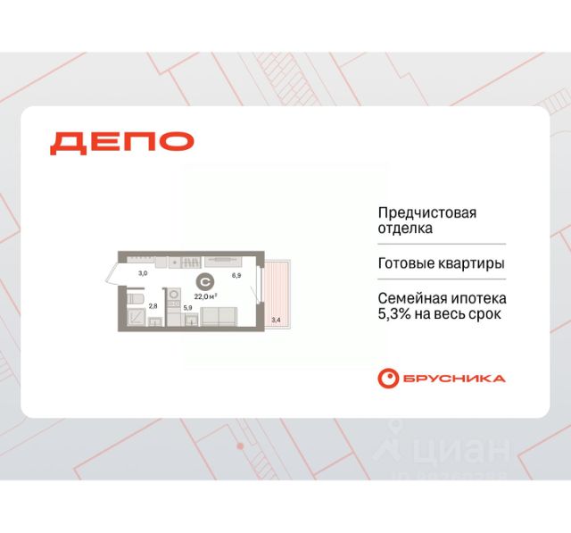 Студия в квартале "Депо". Особенности планировки: предчистовая отделка, балкон. квартиры в нашей базе: ДЕП07-Ж4.4.3. Квартал "Депо" расположен в активно развивающейся части Сортировки, на месте, где раньше был завод "Электротранс". Преимущества Сортировки — развитая инфраструктура. В пешей доступности — супермаркеты, остановки городского транспорта, поликлиники, детские сады, школы, гимназии, торговые центры, автоцентры, рынок с большим и доступным по стоимости выбором товаров, парк РЖД и парк с аттракционами Таганская Слобода. Квартал "Депо" расположен в границах улиц Пехотинцев — Таватуйская — Сортировочная — Новая (проектируется). Благоустройство квартала основано на трёх принципах. Первый — особое внимание к воде. Архитекторы Брусники создадут внутри застройки систему дождевых садов, которые будут фильтровать сток (в том числе с крыш зданий) и снижать нагрузку на ливневую канализацию . Второй принцип — разнообразие. Мы высадим на улицах ивы, липы, яблони разных сортов, спиреи, лапчатку и дерен, а во дворах — березы, липы, черёмухи, пузыреплодник, кизильник и манчжурский орех, который в Екатеринбурге почти не представлен. Третий принцип — зонирование. Центральный бульвар мы насытим площадками для игр детей и спокойного отдыха взрослых, на площади перед детским садом расположим окруженные деревьями плэйхабы, летние веранды кафе, открытое пространство с запоминающимся артом. #ZSCT4a