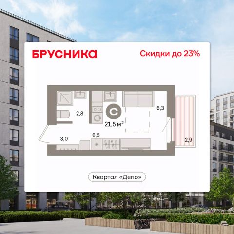 Студия в квартале "Депо". Особенности планировки: балкон, предчистовая отделка. квартиры в нашей базе: ДЕП07-Ж3.4.5. Квартал "Депо" расположен в активно развивающейся части Сортировки, на месте, где раньше был завод "Электротранс". Преимущества Сортировки — развитая инфраструктура. В пешей доступности — супермаркеты, остановки городского транспорта, поликлиники, детские сады, школы, гимназии, торговые центры, автоцентры, рынок с большим и доступным по стоимости выбором товаров, парк РЖД и парк с аттракционами Таганская Слобода. Квартал "Депо" расположен в границах улиц Пехотинцев — Таватуйская — Сортировочная — Новая (проектируется). Благоустройство квартала основано на трёх принципах. Первый — особое внимание к воде. Архитекторы Брусники создадут внутри застройки систему дождевых садов, которые будут фильтровать сток (в том числе с крыш зданий) и снижать нагрузку на ливневую канализацию . Второй принцип — разнообразие. Мы высадим на улицах ивы, липы, яблони разных сортов, спиреи, лапчатку и дерен, а во дворах — березы, липы, черёмухи, пузыреплодник, кизильник и манчжурский орех, который в Екатеринбурге почти не представлен. Третий принцип — зонирование. Центральный бульвар мы насытим площадками для игр детей и спокойного отдыха взрослых, на площади перед детским садом расположим окруженные деревьями плэйхабы, летние веранды кафе, открытое пространство с запоминающимся артом. #zMfO30