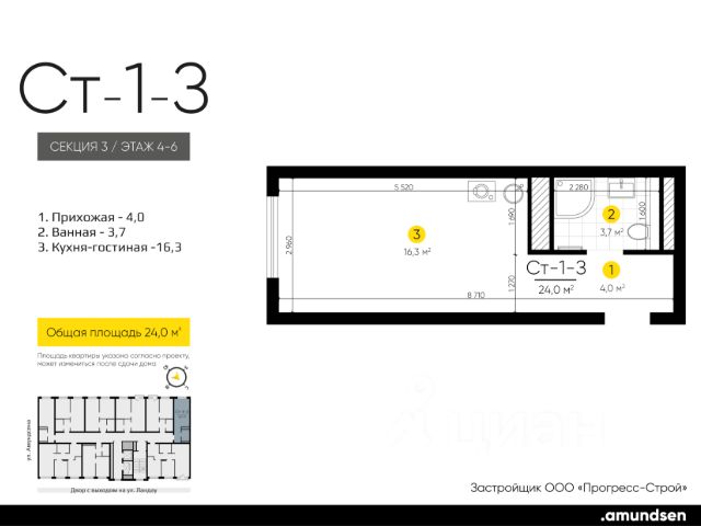 О компании: "Прогресс" — девелопер федерального уровня. Создаём современный стиль жизни с 2012 года. Совершенствуем культуру нашего общества. Предвосхищаем ваши ожидания. "Прогресс" - группа компаний полного цикла. Мы проектируем, строим и обслуживаем свои жилые комплексы. Входим в топ - 10 застройщиков по потребительским качествам ЖК по версии "Единый ресурс застройщиков". Мы - обладатель федеральных и европейских наград в сфере недвижимости: Urban Awards, European Property Awards, "Надёжный застройщик России" и др. Новый проект от создателей жилого квартала "Amundsen" "Progress Академический" - это место, где безопасно и уютно. Вы прочувствуете настоящую жизнь в режиме "здесь и сейчас". Удобная локация делает этот проект максимально привлекательным для тех, кто устал от суеты и ограниченных пространств. Безопасный благоустроенный двор, умные планировки и зонирование территории все это позволит почувствовать новый уровень комфорта. Соседство с лесным массивом, улучшает качество воздуха и создает уникальное экологически чистое окружение. Умные планировки. При проектировании дома наши архитекторы закладывают систему SMART- планировок: - Только разумное распределение полезной площади, которое отвечает реальным потребностям человека. Жители экономят деньги на протяжение всей жизни, ведь используется каждый уголок квартиры. - Несущие стены вынесены по периметру квартиры. Это дает возможность осуществлять перепланировку и реализовывать свои архитектурные идеи. - Все комнаты правильной формы, что упрощает расстановку мебели. Благоустроенные дворы. Наполнение двора детально продумано, с учетом потребностей каждого жителя. Детские площадки для разных возрастов, зоны отдыха, зеленые аллеи и пешеходные дорожки. В центре двора предусмотрен амфитеатр для общих встреч жителей и больших мероприятий. Собственная сервисная компания 24/7 поддерживает чистоту территории жилого квартала. Безопасность. Комплексная безопасность является одним из главных преимуществ. Проектом предусмотрено: закрытая придомовая территория без машин и круглосуточное видеонаблюдение без слепых зон, доступ через специальное мобильное приложение. Удобная локация. Инфраструктура обеспечит комфортную жизнь каждому. Это пространство с уникальной образовательной, спортивной и культурной инфраструктурой, необходимой для развития всесторонней личности. Парки и прогулочные зоны Продуктовые магазины "Пятерочка" и "Магнит" Тренажерные залы и фитнес-клубы 4 школы 9 детских садов Остановки общественного транспорта в 10 минутах ходьбы Технические преимущества: - система очистки водопроводной воды до питьевой - система телеметрии - установлены входные двери с тепло-шумоизоляцией - радиаторы отопления - наружные стены с встроенной шумоизоляцией - фасадная дренажная система позволяет избежать затопления фасадов и образования грязевых луж. Способы приобретения квартиры: • С помощью материнского капитала • В ипотеку Забронируйте квартиру по номеру телефона офиса продаж.
