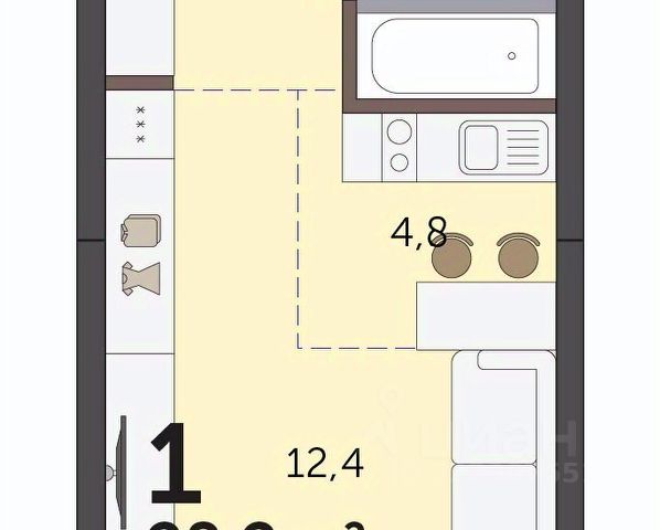 Продаётся студия в строящемся доме (Дом 6), срок сдачи: III-кв. 2027, общей площадью 30.1 кв.м., на 5 этаже. Расположение, транспортная доступность
