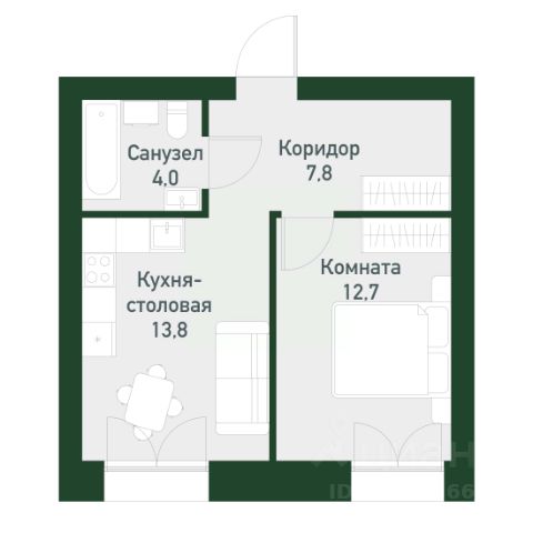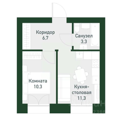 Удачная планировка: просторная кухня-гостиная площадью 14,5 м2 с выходом на лоджию, жилая комната площадью 11,6 м2, совмещенный санузел и вместительный коридор с нишой для хранения !