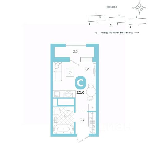 Эргономичная квартира-студия с лоджией и перспективой роста в цене — отличный выбор для тех, кто делает первые шаги к самостоятельной жизни. Общая площадь квартиры 21,8 кв.м., и ее умная планировка позволяет создать атмосферу, полностью отражающую ваши стиль и предпочтения. Квартира располагается в ЖК "Комсомольский" — жилом комплексе комфорт-класса. Здесь вы будете наслаждаться беззаботной жизнью, ведь ваш дом — воплощение практичности, безопасности и надежности. Для удобства предусмотрены колясочные на первых этажах домов, где можно оставить велосипеды и коляски в тепле. За безопасность отвечают система электронных ключей и видеонаблюдение. Еще здесь собственная котельная, поэтому в доме всегда будут горячая вода и оплата счетов только за фактически потребленное тепло. ПРЕИМУЩЕСТВА ЖК На этаже 15 квартир Красивые и функциональные парадные с мягкой и стильной зоной для отдыха, книгообменником, встроенными почтовыми ящиками и нишами для сумок Колясочные с доступом по ключу IP-домофоны Тихие лифты с плавным ходом О ПРОЕКТЕ ЖК "Комсомольский" строится в спокойном Кировском районе Екатеринбурга в границах улиц Сыромолотова — Рассветная — 40-лет Комсомола. Комплекс состоит из трех домов переменной этажности, которые выделяются динамичными линиями, выразительными фасадами и стильными лоджиями. ЛОКАЦИЯ Всё, что необходимо для повседневной жизни, находится недалеко от дома: школы, детские сады, продуктовые магазины, фитнес-клубы. Дорога до центра города на машине займет всего 10 минут — достаточно повернуть с улицы 40-летия Комсомола на улицу Владимира Высоцкого. Рядом с этим перекрестком начинается "Тропа здоровья" — большой терренкур вдоль "Каменных палаток". 10 мин до центра 3-4 минуты до школы No 82, гимназии No 176 4-5 минут до детских садов No 208, No 583, 266 20 мин до Свердловского областного медицинского колледжа и Центральной городской больницы No 7 В рамках стратегического развития района на первых этажах домов появятся коммерческие помещения, в которых откроются магазины и кафе. Следует учесть, что к 2030 году в Кировском районе планируется формирование регионального рекреационно-оздоровительного кластера, строительство ветки метро, расширение и модернизация старых промышленных зон социальной и бизнес-инфраструктуры, что приведет к созданию комфортной среды для жизни. Кроме того, в стратегию входит развитие Шарташского лесного парка как центра регионального и международного туризма. СПОСОБЫ ПОКУПКИ Ипотека: подберем выгодные условия в нескольких банках, чтобы вы могли выбрать лучшее Материнской капитал: можно использовать в качестве первоначального взноса Рассрочка: платите частями без % Сертификаты: позволяют оплатить часть стоимости квартиры О КОМПАНИИ "Паритет Девелопмент" — это современный и ответственный подход к реализации проектов в сфере жилищного строительства. Компания формирует среду, способную создать новое качество жизни для клиентов, поэтому каждый проект имеет свою философию — не просто квадрат
