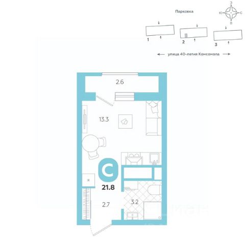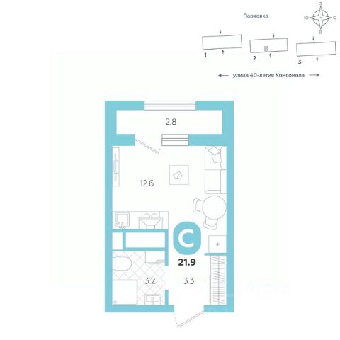 Эргономичная квартира-студия с лоджией и перспективой роста в цене — отличный выбор для тех, кто делает первые шаги к самостоятельной жизни. Общая площадь квартиры 21,9 кв.м., и ее умная планировка позволяет создать атмосферу, полностью отражающую ваши стиль и предпочтения. Квартира располагается в ЖК "Комсомольский" — жилом комплексе комфорт-класса. Здесь вы будете наслаждаться беззаботной жизнью, ведь ваш дом — воплощение практичности, безопасности и надежности. Для удобства предусмотрены колясочные на первых этажах домов, где можно оставить велосипеды и коляски в тепле. За безопасность отвечают система электронных ключей и видеонаблюдение. Еще здесь собственная котельная, поэтому в доме всегда будут горячая вода и оплата счетов только за фактически потребленное тепло. ПРЕИМУЩЕСТВА ЖК На этаже 15 квартир Красивые и функциональные парадные с мягкой и стильной зоной для отдыха, книгообменником, встроенными почтовыми ящиками и нишами для сумок Колясочные с доступом по ключу IP-домофоны Тихие лифты с плавным ходом О ПРОЕКТЕ ЖК "Комсомольский" строится в спокойном Кировском районе Екатеринбурга в границах улиц Сыромолотова — Рассветная — 40-лет Комсомола. Комплекс состоит из трех домов переменной этажности, которые выделяются динамичными линиями, выразительными фасадами и стильными лоджиями. ЛОКАЦИЯ Всё, что необходимо для повседневной жизни, находится недалеко от дома: школы, детские сады, продуктовые магазины, фитнес-клубы. Дорога до центра города на машине займет всего 10 минут — достаточно повернуть с улицы 40-летия Комсомола на улицу Владимира Высоцкого. Рядом с этим перекрестком начинается "Тропа здоровья" — большой терренкур вдоль "Каменных палаток". 10 мин до центра 3-4 минуты до школы No 82, гимназии No 176 4-5 минут до детских садов No 208, No 583, 266 20 мин до Свердловского областного медицинского колледжа и Центральной городской больницы No 7 В рамках стратегического развития района на первых этажах домов появятся коммерческие помещения, в которых откроются магазины и кафе. Следует учесть, что к 2030 году в Кировском районе планируется формирование регионального рекреационно-оздоровительного кластера, строительство ветки метро, расширение и модернизация старых промышленных зон социальной и бизнес-инфраструктуры, что приведет к созданию комфортной среды для жизни. Кроме того, в стратегию входит развитие Шарташского лесного парка как центра регионального и международного туризма. СПОСОБЫ ПОКУПКИ Ипотека: подберем выгодные условия в нескольких банках, чтобы вы могли выбрать лучшее Материнской капитал: можно использовать в качестве первоначального взноса Рассрочка: платите частями без % Сертификаты: позволяют оплатить часть стоимости квартиры О КОМПАНИИ "Паритет Девелопмент" — это современный и ответственный подход к реализации проектов в сфере жилищного строительства. Компания формирует среду, способную создать новое качество жизни для клиентов, поэтому каждый проект имеет свою философию — не просто квадрат