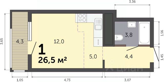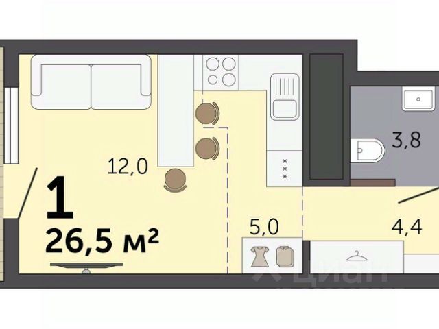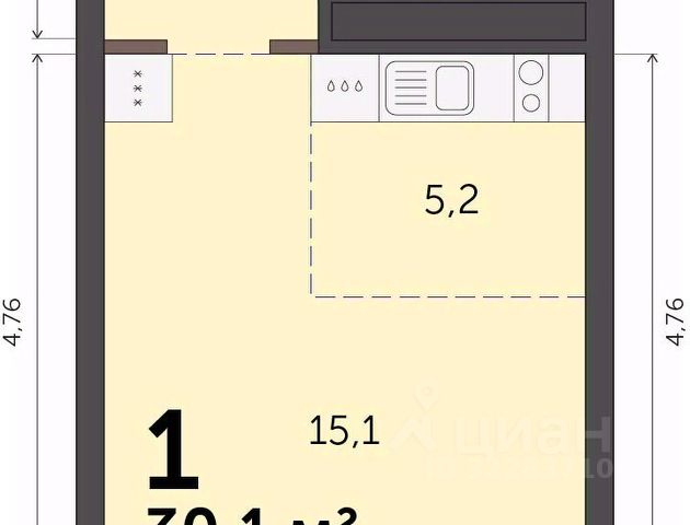 Продаётся студия в строящемся доме (Дом 6), срок сдачи: III-кв. 2027, общей площадью 30.1 кв.м., на 6 этаже. Расположение, транспортная доступность