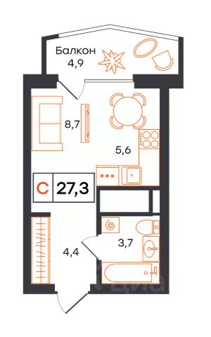 • ✓ В базе Циан 24 квартир-студий на 6 этаже в микрорайоне Вторчермет в городе Екатеринбург