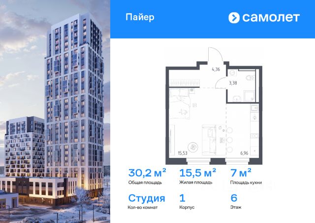 Строим кварталы для жизни с заботой о будущем. Предлагается квартира студия комфорт-класса 33,88 кв.м в корпусе 2 на 6 этаже, в ЖК "Пайер" Квартира с предчистовой отделкой. Доступность дополнительных опций уточняйте у застройщика. Приобрести квартиру возможно по специальным акциям от застройщика, с текущими условиями акций можно ознакомиться в блоке "Акций". Цена динамическая и может отличаться, уточняйте актуальность у застройщика. В жилом квартале "Пайер" мы сохранили уютную и беззаботную атмосферу. До центра Екатеринбурга — 15 минут на авто. Всего 20 минут прогулки - до большого парка на берегу реки Исеть и Ольховского пруда. Рядом работают детские сады, школа, магазины, пункты выдачи, аптеки и кафе. В приватном зеленом дворе-парке есть спортивная и игровая зона. Лаконичные фасады с открытыми террасами выглядят выразительно. Квартиры с предчистовой отделкой.