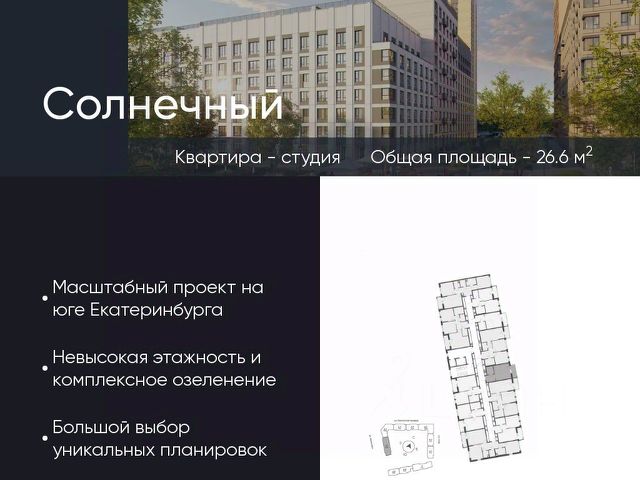 Продаётся квартира-студия площадью 22,4 кв.м на 7 этаже 29 этажного дома (Корпус 6, Секция 1) проекта ПИК Утёс. Светлый просторный подъезд на уровне земли, функциональная планировка, большие окна, предчистовая отделка. Жилой квартал "Утёс" находится в Екатеринбурге, в самом центре микрорайона Уктус, в 25 минутах на автомобиле от центра города. Рядом река Исеть, на которую открывается панорамный вид из окон квартала. Для прогулок возле реки у жителей проекта будет собственная благоустроенная набережная. В микрорайон входит десять жилых корпусов, собственный детский сад для 236 малышей и многоуровневые надземные паркинги на 848 мест. На первых этажах домов откроются кафе, магазины и другие сервисы. Застройка разной высоты даёт ощущение свободного пространства и пропускает много естественного света в квартиры и во дворы. Во дворах появятся уютные парки с детскими площадками и местами для отдыха - здесь можно будет отдохнуть после работы, поболтать с соседями, почитать в тени или позаниматься йогой. Спортивные площадки мы разместим так, чтобы шум от них не мешал жителям. В окружающем районе есть всё для комфортной жизни: школы, детские сады, поликлиники, продуктовые магазины. За 7 минут на автомобиле можно доехать до крупных торговых центров - например, до ТРЦ "Глобус". Рядом есть парки - Парк Лесоводов России, "Уктусские горы" и Карасье-Озёрский лесной парк. Артикул 966988 (Застройщик ООО "СЗ "АРТСТРОЙ")