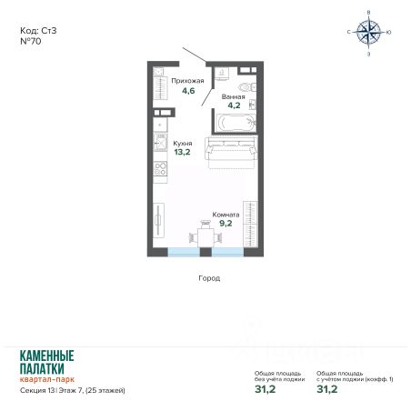 Эргономичная квартира-студия с лоджией и перспективой роста в цене — отличный выбор для тех, кто делает первые шаги к самостоятельной жизни. Общая площадь квартиры 28,7 кв.м., и ее умная планировка позволяет создать атмосферу, полностью отражающую ваши стиль и предпочтения. Квартира располагается в ЖК "Комсомольский" — жилом комплексе комфорт-класса. Здесь вы будете наслаждаться беззаботной жизнью, ведь ваш дом — воплощение практичности, безопасности и надежности. Для удобства предусмотрены колясочные на первых этажах домов, где можно оставить велосипеды и коляски в тепле. За безопасность отвечают система электронных ключей и видеонаблюдение. Еще здесь собственная котельная, поэтому в доме всегда будут горячая вода и оплата счетов только за фактически потребленное тепло. ПРЕИМУЩЕСТВА ЖК На этаже 15 квартир Красивые и функциональные парадные с мягкой и стильной зоной для отдыха, книгообменником, встроенными почтовыми ящиками и нишами для сумок Колясочные с доступом по ключу IP-домофоны Тихие лифты с плавным ходом О ПРОЕКТЕ ЖК "Комсомольский" строится в спокойном Кировском районе Екатеринбурга в границах улиц Сыромолотова — Рассветная — 40-лет Комсомола. Комплекс состоит из трех домов переменной этажности, которые выделяются динамичными линиями, выразительными фасадами и стильными лоджиями. ЛОКАЦИЯ Всё, что необходимо для повседневной жизни, находится недалеко от дома: школы, детские сады, продуктовые магазины, фитнес-клубы. Дорога до центра города на машине займет всего 10 минут — достаточно повернуть с улицы 40-летия Комсомола на улицу Владимира Высоцкого. Рядом с этим перекрестком начинается "Тропа здоровья" — большой терренкур вдоль "Каменных палаток". 10 мин до центра 3-4 минуты до школы No 82, гимназии No 176 4-5 минут до детских садов No 208, No 583, 266 20 мин до Свердловского областного медицинского колледжа и Центральной городской больницы No 7 В рамках стратегического развития района на первых этажах домов появятся коммерческие помещения, в которых откроются магазины и кафе. Следует учесть, что к 2030 году в Кировском районе планируется формирование регионального рекреационно-оздоровительного кластера, строительство ветки метро, расширение и модернизация старых промышленных зон социальной и бизнес-инфраструктуры, что приведет к созданию комфортной среды для жизни. Кроме того, в стратегию входит развитие Шарташского лесного парка как центра регионального и международного туризма. СПОСОБЫ ПОКУПКИ Ипотека: подберем выгодные условия в нескольких банках, чтобы вы могли выбрать лучшее Материнской капитал: можно использовать в качестве первоначального взноса Рассрочка: платите частями без % Сертификаты: позволяют оплатить часть стоимости квартиры О КОМПАНИИ "Паритет Девелопмент" — это современный и ответственный подход к реализации проектов в сфере жилищного строительства. Компания формирует среду, способную создать новое качество жизни для клиентов, поэтому каждый проект имеет свою философию — не просто квадрат