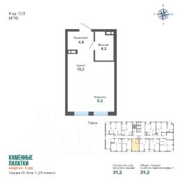 Квартира 74 в подъезде 1. Новое поколение комфорта и технологий для жизни. Закрытый двор без машин. Двухуровневый подземный паркинг с лифтовым спуском и кладовыми. Эргономичные планировки, большие окна, системы фильтрации воды и проветривания. Дизайнерские вестибюли в стилистике советского авангарда и всесезонная игровая комната. Архитектура сочетает лаконичность конструктивизма и современные материалы. В центре квартала запроектирован муниципальный детский сад на 300 мест.
