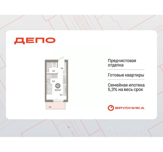 Продаётся студия в строящемся доме (Дом 6), срок сдачи: III-кв. 2027, общей площадью 28.2 кв.м., на 7 этаже. Расположение, транспортная доступность