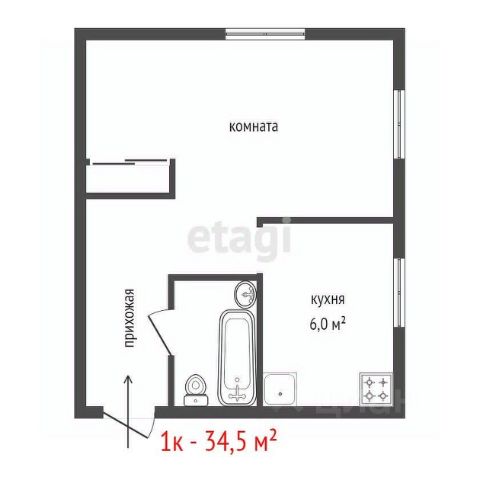 Кухня 5.9 м2, комната 19.8м2, коридор значительно большой по площади 3.8 м2, санузел у нас совмещённый 4 м2.