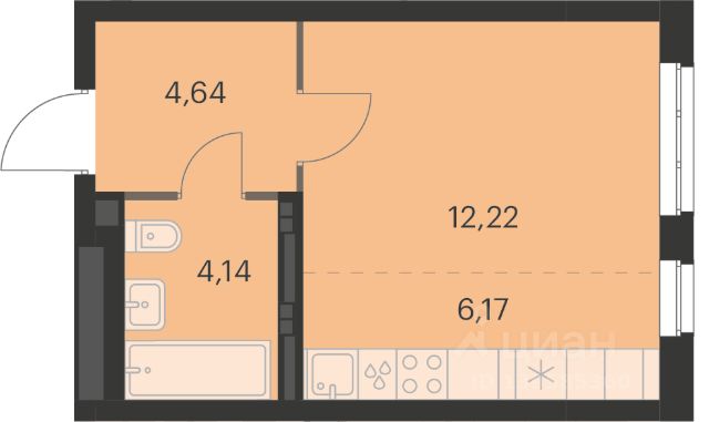 Отличительная особенность студии-2 окна, что позволит зонировать помещение на два пространства. Правильная геометрия квартиры, никаких косых стен.