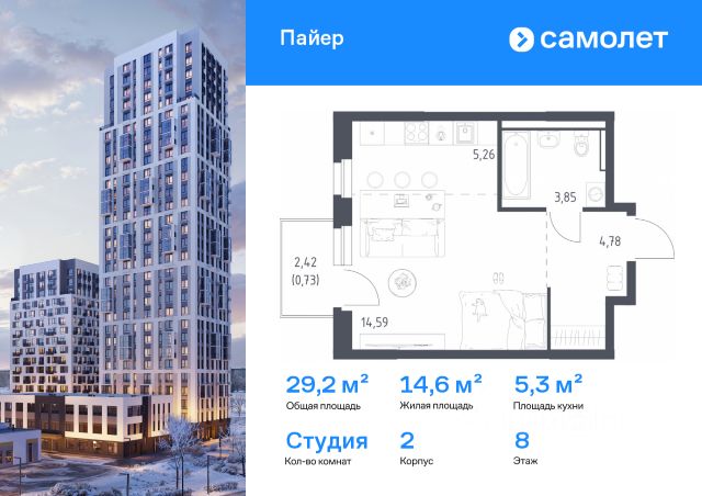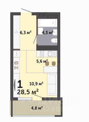 Продается однокомнатная студия от застройщика с предчистовой отделкой в ЖК "Квартал Траектория" на 8 этаже. Общая площадь: 33.2 кв.м., площадь гостиной 22.6 кв.м., из которых 5 кв.м. выделено под кухонную зону. Все окна выходят на одну сторону. В квартире один балкон, один совмещенный санузел. Высота потолков 2.82 м. Дом монолитный, многоподъездный, переменной этажности, от 7 до 25 этажей. Квартира находится в 1-й секции высотой 25 этажей в корпусе 1-1. На этаже 12 квартир. В подъезде 2 пассажирских и 1 грузовой лифт. Начало строительства - 4 квартал 2025 года. Окончание строительства - 4 квартал 2027 года. Оформление сделки по договору долевого участия. Студия в квартале "Траектория". Особенности планировки: балкон, предчистовая отделка. квартиры в нашей базе: МНВ01-Ж1.8.8. Квартал "Траектория" строится в границах улиц Билимбаевской, Расточной, Монтажников и Маневровой Раньше здесь находился оборонный завод 5-ЦАРЗ, основанный в 1945 году. После войны он ремонтировал военную и грузовую технику — от "Виллисов" и "Студебекеров" до советских ЗИС-5 и ГАЗ-67. Сортировка — район с развитой инфраструктурой, обжитыми жилыми кварталами разных эпох и большим количеством парков. До центра Екатеринбурга — 20 минут на машине. Туда же можно отправиться на автобусе: ближайшая остановка общественного транспорта — в 4 минутах от "Траектории". Рядом с "Траекторией" расположены магазины, торговый центр, детские сады, школы, поликлиники и полезные сервисы, а также другой проект Брусники — квартал "Депо". Если хочется развлечений, можно отправиться в ТРЦ "Карнавал" и парк с аттракционами "Таганская слобода" — дорога туда займёт не более 10 минут на машине. Квартал "Траектория" — первый этап комплексного развития территории, которую раньше занимали производственные здания. На месте бывших цехов Брусника создаст дружелюбную среду и комфортное пешеходное пространство для всего района. Для озеленения квартала мы подобрали больше 60 видов растений: ольху, липу, клён, иву, грушу, вишню, сирень, барбарис, гортензию, смородину, ирис, декоративные травы. Они цветут в разное время года и постоянно меняют настроение двора. В "Траектории" мы предусмотрели несколько общественных пространств, открытых для всех горожан: встречающий сквер, лесопарк у храма и событийный сквер между домами. Когда захочется тишины и уединения, можно устроить прогулку во внутренних дворах: в них нет машин и посторонних, зато много зелени, света и мест для отдыха. Каждый двор в квартале "Траектория" — продолжение квартиры, только под открытым небом. Здесь можно прогуляться босиком по траве, устроить утреннюю йогу, почитать книгу в гамаке или отправить детей поиграть, не переживая за их безопасность. Мы закроем дворы от машин, чтобы создать безопасную среду для отдыха. Применим натуральные материалы в отделке малых архитектурных форм — дерево, камень, металл без лишней обработки. Внутри каждого двора — детские площадки, перголы с тенистыми зонами, мягкие газоны и места для общени