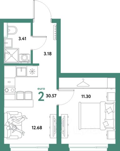 Продается 1-комн. квартира-студия с предчистовой отделкой в ЖК "Алиса" на 2 этаже. Общая площадь: 22.48 кв.м., площадь гостиной 14.79 кв.м., из которых 5.08 кв.м. выделено под кухонную зону. Все окна выходят на одну сторону. В квартире один совмещенный санузел. Высота потолков 2.72 м.