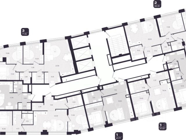 В доме представлено 272 квартиры, от 2 до 9 на этаже, с предчистовой отделкой. Девелопер предлагает более 30 вариантов планировок с гардеробными, просторными санузлами и окнами на 2 стороны.