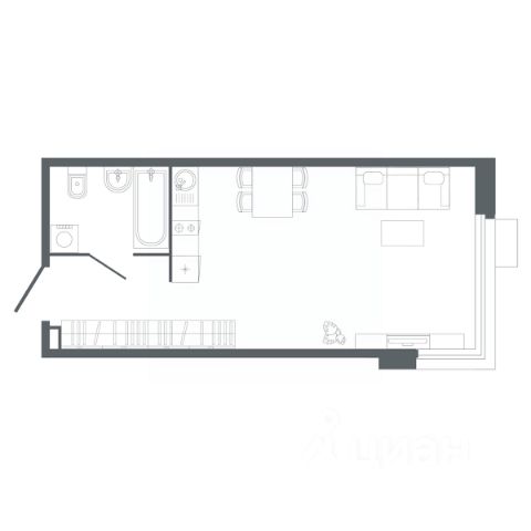 Студия в квартале "Траектория". Особенности планировки: балкон, предчистовая отделка.