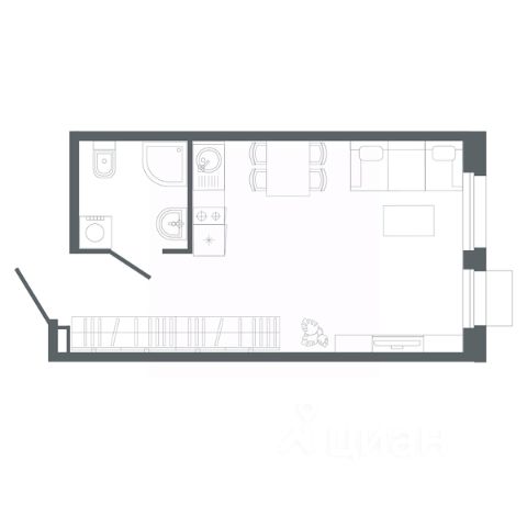 1-комн. студия от застройщика с предчистовой отделкой в ЖК "Квартал Траектория" на 8 этаже. Общая площадь: 33.2 кв.м., площадь гостиной 22.6 кв.м., из которых 5 кв.м. выделено под кухонную зону. Все окна выходят на одну сторону. В квартире один балкон, один совмещенный санузел. Высота потолков 2.82 м.