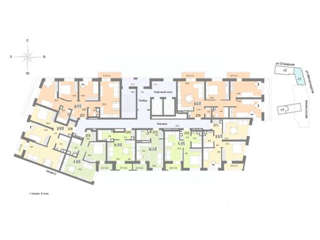 Просторная 1-комн. студия с предчистовой отделкой в ЖК "Квартал Траектория" на 8 этаже. Общая площадь: 33.2 кв.м., площадь гостиной 22.6 кв.м., из которых 5 кв.м. выделено под кухонную зону. Все окна выходят на одну сторону. В квартире один балкон, один совмещенный санузел. Высота потолков 2.82 м. Дом монолитный, многоподъездный, переменной этажности, от 7 до 25 этажей. Квартира находится в 1-й секции высотой 25 этажей в корпусе 1-1. На этаже 12 квартир. В подъезде 2 пассажирских и 1 грузовой лифт. Начало строительства - 4 квартал 2025 года. Окончание строительства - 4 квартал 2027 года. Оформление сделки по договору долевого участия. Студия в квартале "Траектория". Особенности планировки: балкон, предчистовая отделка. квартиры в нашей базе: МНВ01-Ж1.8.7. Квартал "Траектория" строится в границах улиц Билимбаевской, Расточной, Монтажников и Маневровой Раньше здесь находился оборонный завод 5-ЦАРЗ, основанный в 1945 году. После войны он ремонтировал военную и грузовую технику — от "Виллисов" и "Студебекеров" до советских ЗИС-5 и ГАЗ-67. Сортировка — район с развитой инфраструктурой, обжитыми жилыми кварталами разных эпох и большим количеством парков. До центра Екатеринбурга — 20 минут на машине. Туда же можно отправиться на автобусе: ближайшая остановка общественного транспорта — в 4 минутах от "Траектории". Рядом с "Траекторией" расположены магазины, торговый центр, детские сады, школы, поликлиники и полезные сервисы, а также другой проект Брусники — квартал "Депо". Если хочется развлечений, можно отправиться в ТРЦ "Карнавал" и парк с аттракционами "Таганская слобода" — дорога туда займёт не более 10 минут на машине. Квартал "Траектория" — первый этап комплексного развития территории, которую раньше занимали производственные здания. На месте бывших цехов Брусника создаст дружелюбную среду и комфортное пешеходное пространство для всего района. Для озеленения квартала мы подобрали больше 60 видов растений: ольху, липу, клён, иву, грушу, вишню, сирень, барбарис, гортензию, смородину, ирис, декоративные травы. Они цветут в разное время года и постоянно меняют настроение двора. В "Траектории" мы предусмотрели несколько общественных пространств, открытых для всех горожан: встречающий сквер, лесопарк у храма и событийный сквер между домами. Когда захочется тишины и уединения, можно устроить прогулку во внутренних дворах: в них нет машин и посторонних, зато много зелени, света и мест для отдыха. Каждый двор в квартале "Траектория" — продолжение квартиры, только под открытым небом. Здесь можно прогуляться босиком по траве, устроить утреннюю йогу, почитать книгу в гамаке или отправить детей поиграть, не переживая за их безопасность. Мы закроем дворы от машин, чтобы создать безопасную среду для отдыха. Применим натуральные материалы в отделке малых архитектурных форм — дерево, камень, металл без лишней обработки. Внутри каждого двора — детские площадки, перголы с тенистыми зонами, мягкие газоны и места для общения с соседями. #Z69zW