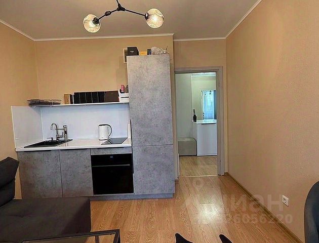 Кухонная зона оборудована гарнитуром, электроплитой со стеклокерамической варочной панелью и духовкой, вытяжкой, холодильником, в зоне гостиной на стене телевизор. В жилой комнате имеется встроенный функциональный шкаф-купе. Стены и пол в санузле облицованы керамогранитом, дорогая сантехника, сан фаянс - инсталляция. В прихожей - шкаф-купе для одежды, видеодомофон, надежная входная-сейф дверь.