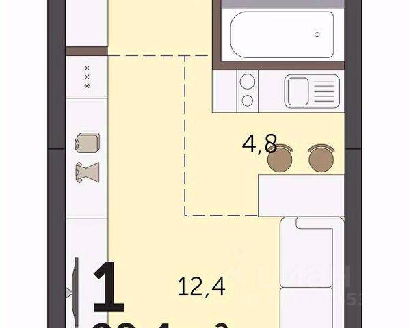 Продаётся студия в строящемся доме (Дом 6), срок сдачи: III-кв. 2027, общей площадью 33.5 кв.м., на 9 этаже. Расположение, транспортная доступность